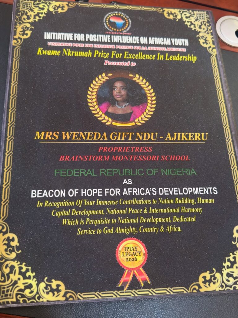 The Founder of Women in Port Harcourt (WIP), Weneda Gift Ndu-Ajikeru, has been honored with the prestigious Kwame Nkrumah Prize for Excellence in Leadership.
